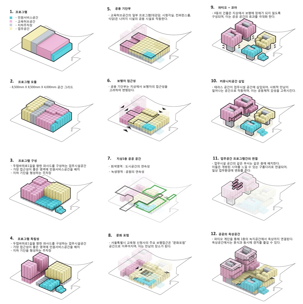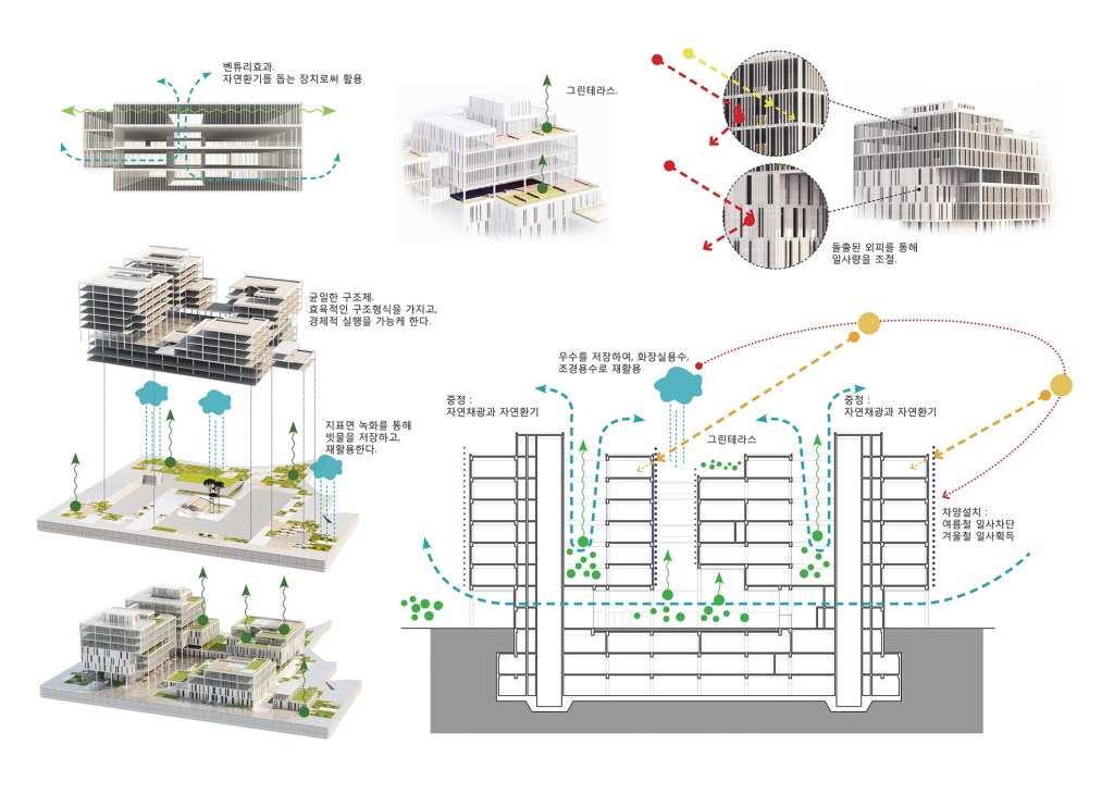 La oficinas tendrán asociados al espacio de trabajo otros espacios naturales verdes, dando al trabajo un aspecto humano y al espacio de oficina un carácter público como base para las relaciones interpersonales en el entorno laboral.