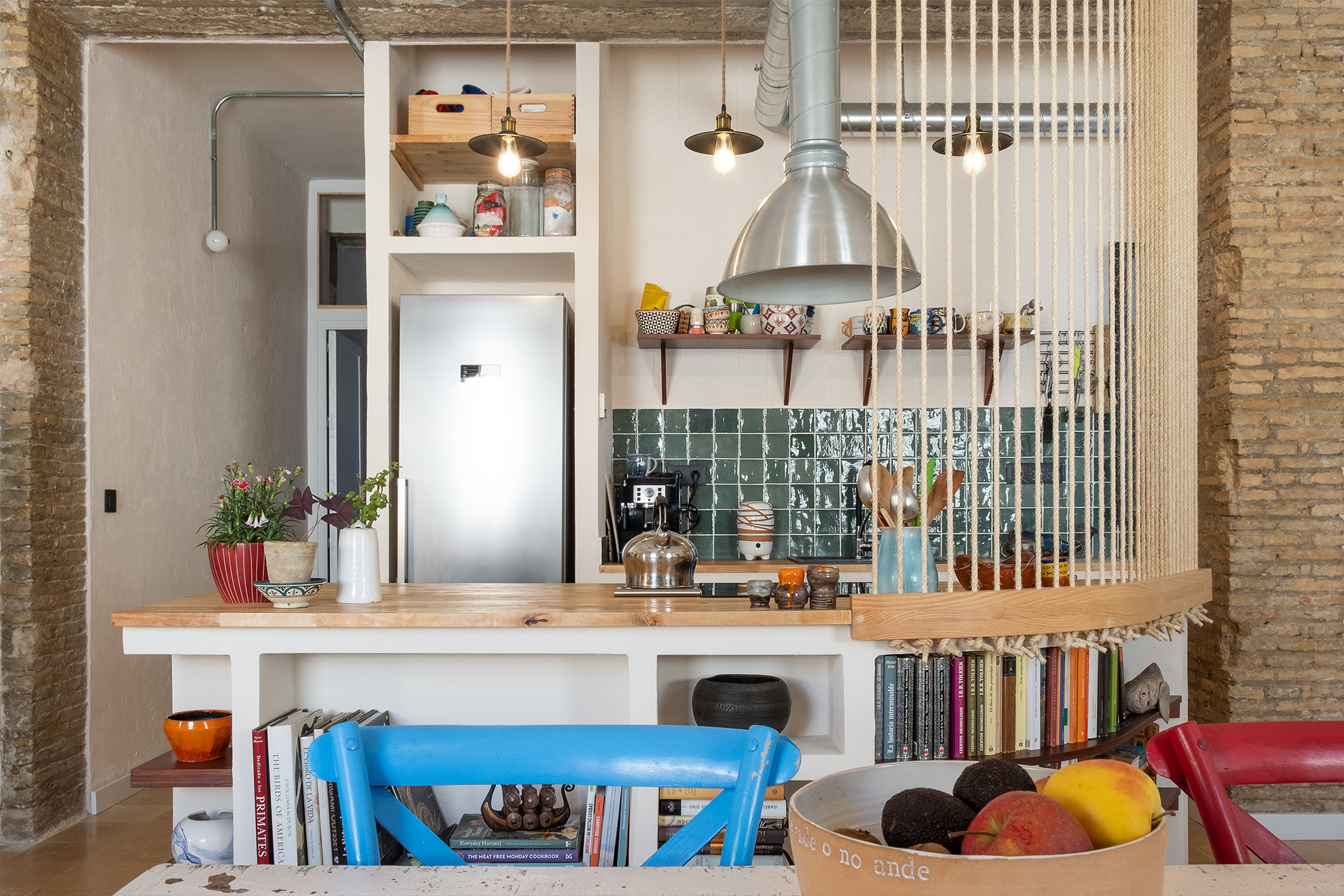 Los nuevos habitantes son una pareja de biólogos con dos niños. Nos encontramos con 4 habitaciones y decidimos transformarla en una casa de 3 más un espacio de relación central lo suficientemente generoso como para aunar cocina, comedor, estar y zona de juegos.
