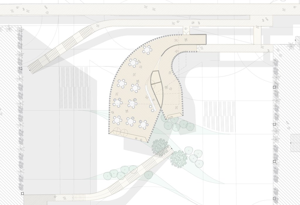 Deck connections are solved with a sensitive strategy whose main purpose is to not build Seunsangga complex even more, but to enhance the existing building and improve the public spaces over and under the deck.