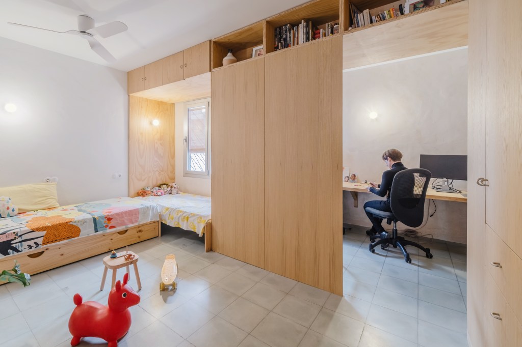 - A norte, la zona de noche donde un único espacio acoge la zona de descanso, juegos y vestidor.