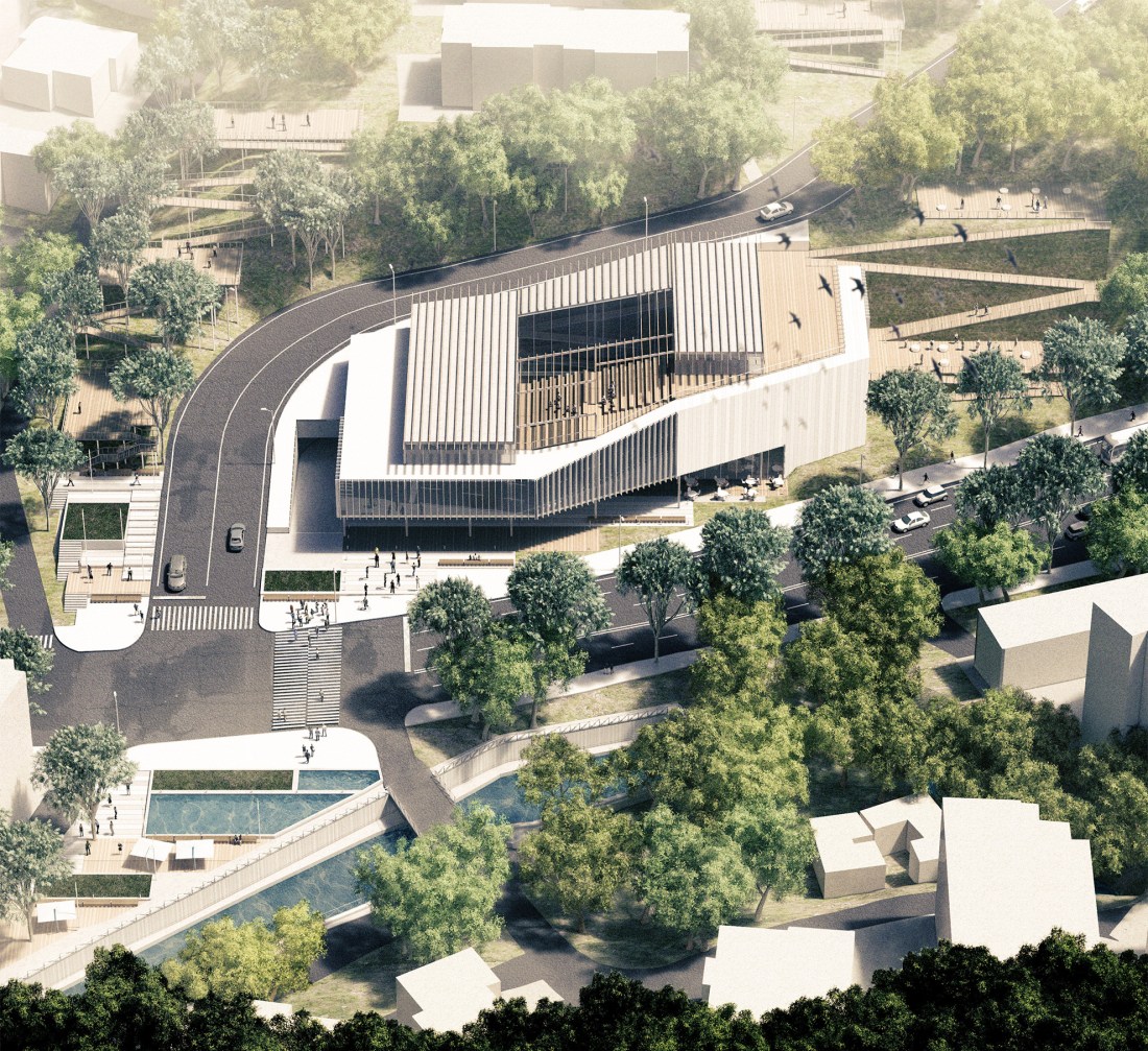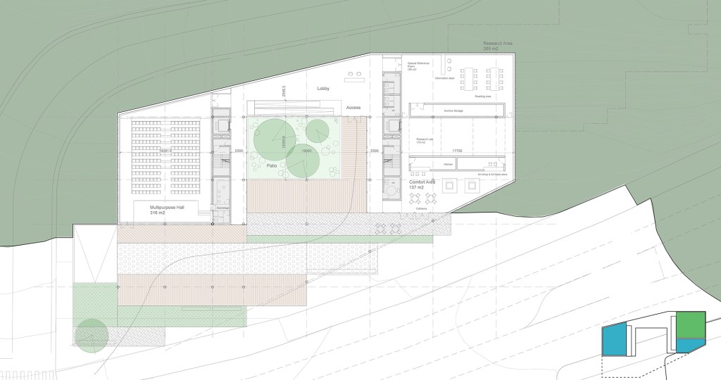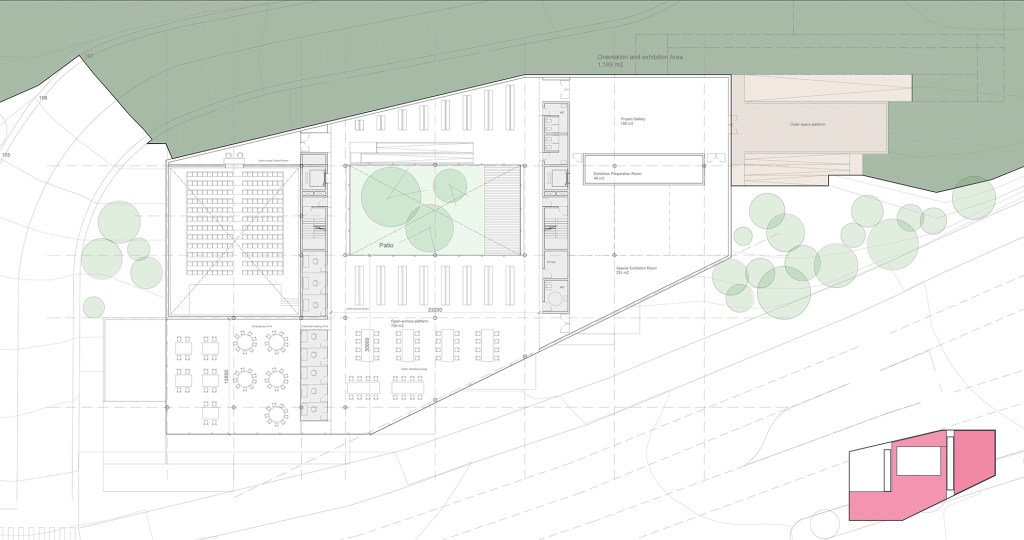 The main intention of the proposal is to concentrate the requested program in a building located on a strategic point of the biggest site.