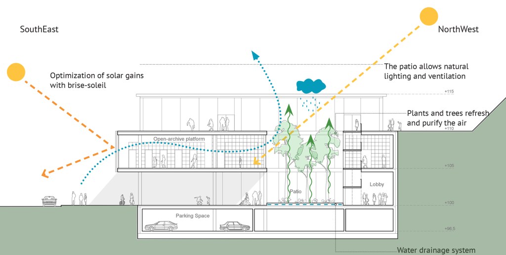 The ground level of the rest of the sites is designed to allocate public space where the Environment Respect is the main goal.