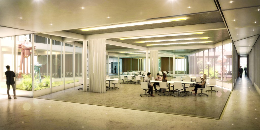 Inside the building, all the spaces are designed to be flexible. Not only the exhibition spaces but also creative spaces for work, education and office.