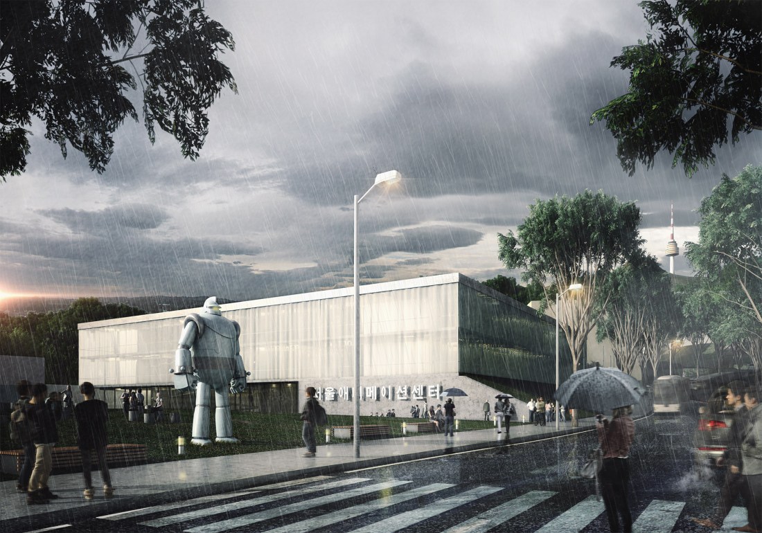 The new Seoul Animation Center for Seoul is designed to be a big blank canvas for outdoor animation movie projections.